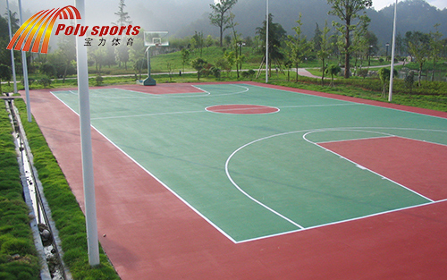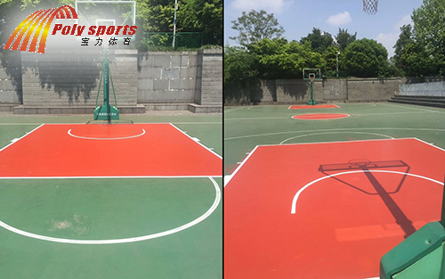 柯橋電信籃球場地施工公司寶力體育介紹硅pu球場